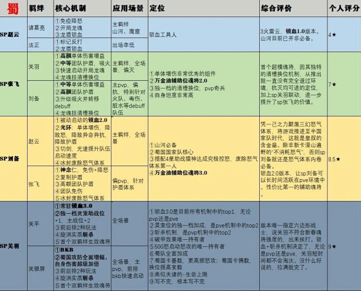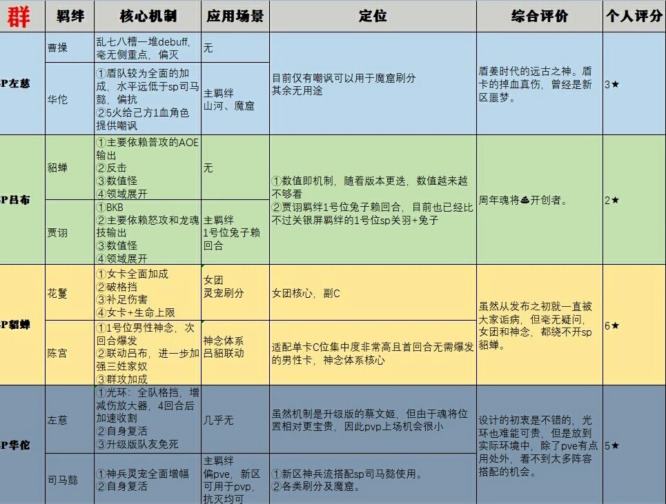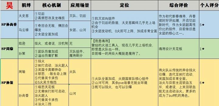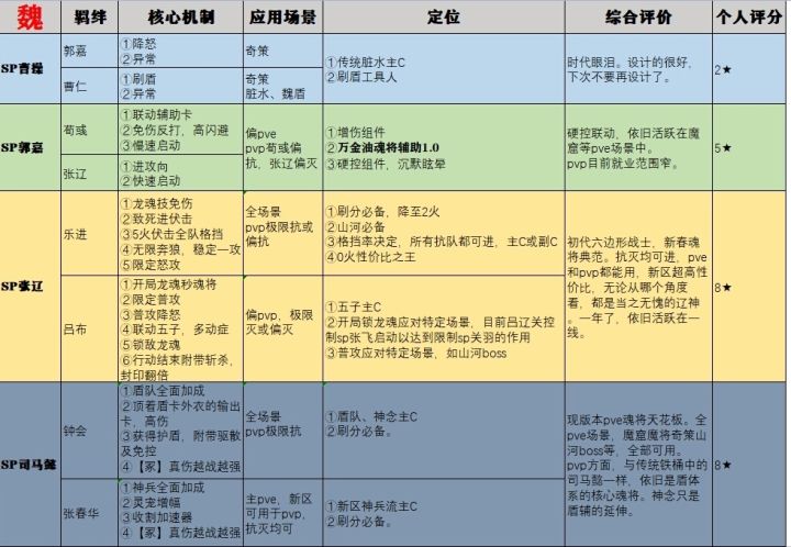 下图加入了个人对于魂将的评分,各位在魂将养成时,可以参考评分及自己的主队,按序养成