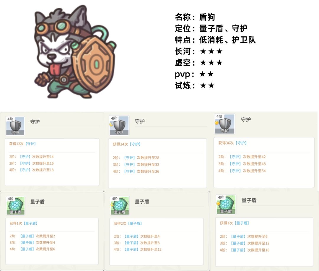 3阶:【量子盾】层数提升至12,攻击力加成百分比提升至60%