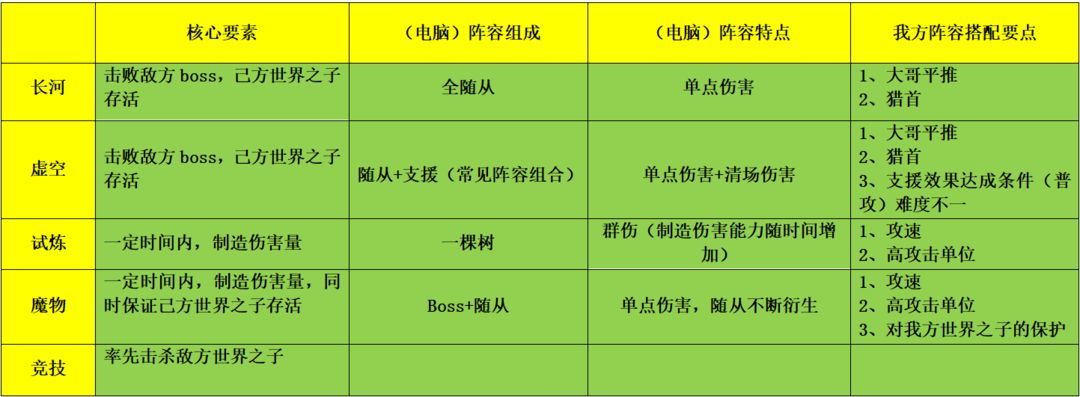4、讨伐魔物(必选):在有限时间内,在制造更高的伤害的同时,确保我方世界之子能够有足够长的存活时间。我方世界之子阵亡同样游戏结束。