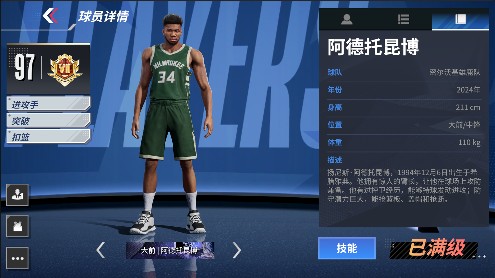 ●游戏中的字母哥拥有专属模型和更长的扣篮起跳距离,可以更加轻松的肆虐篮筐,在防守端也十分全能,篮板、盖帽、抢断样样精通!