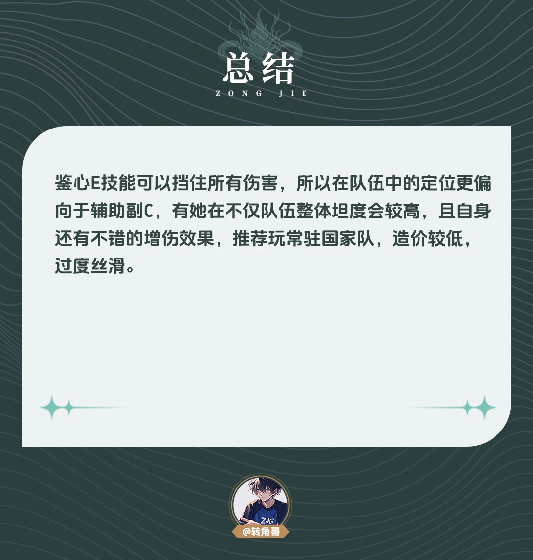 鉴心是目前第一盾辅,有着免伤+护盾的特殊机制