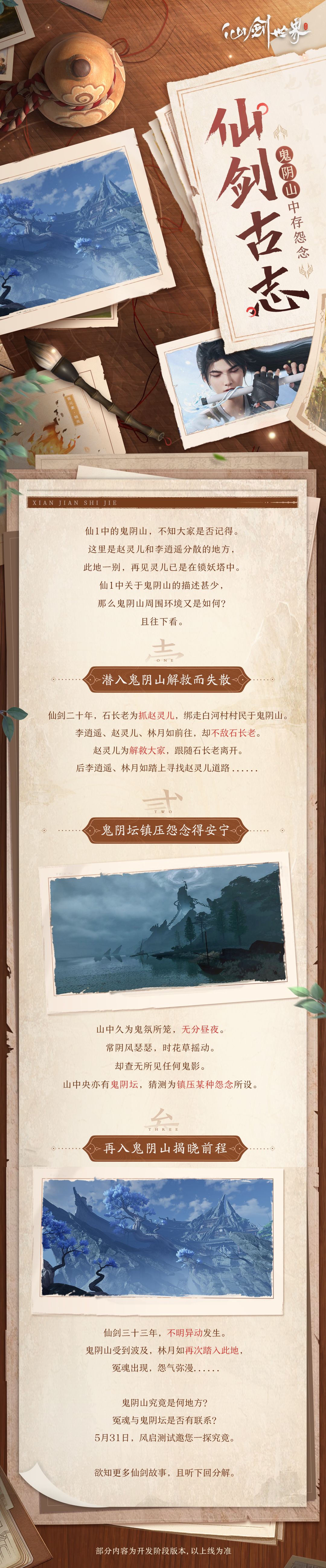 预约+关注+在评论区书写你对「鬼阴山」的初印象即可!小仙将在评论区随机揪5位仙友送出「风启测试」资格、另抽取两位幸运仙友送出仙剑精美周边。