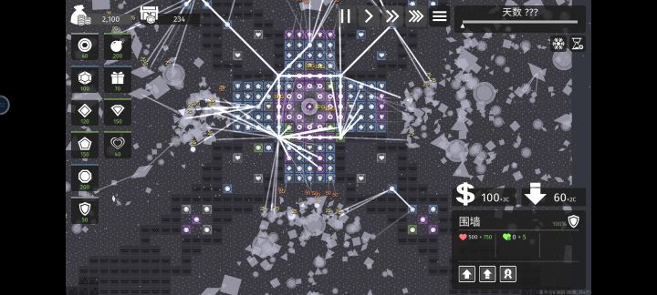 思路:优先先把金矿升满,攻击塔主冰冻塔(因为怪多需要减速拖到太阳升起,并且越冷攻击越高),副激光塔(因为冷却时间问题,只要一个冰塔打到游戏结束都种不满),折射塔一冷却就种(先让折射塔能相连到最远的距离,为了寒冰塔能提前减速怪物),寒冰炸弹或者炸弹作为容错种植,无要求,最后黑夜降临开始卖金矿水晶矿升级边角(边角不容易被攻击)的攻击塔,基本思路就这样