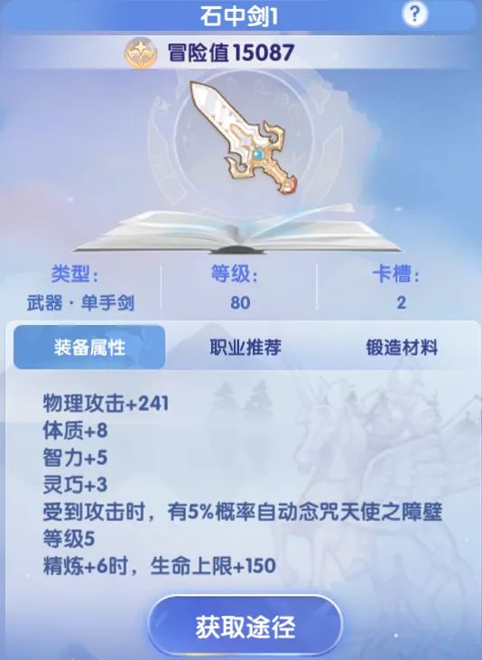 - 装备选择:武器:(石中剑)