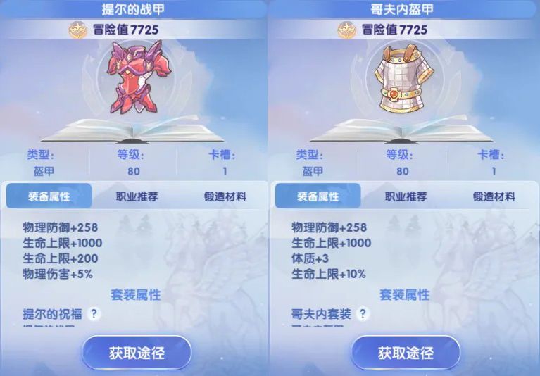 盔甲:提尔战甲、哥夫内盔甲(PVP可选)