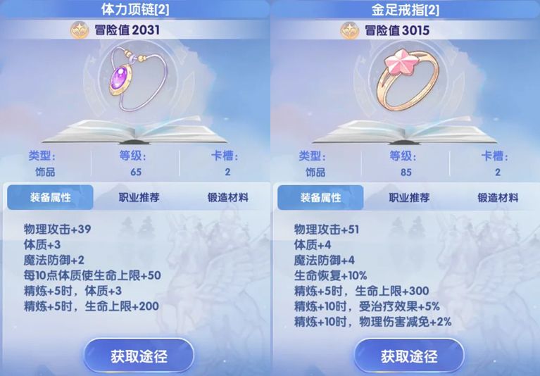 饰品:65级体力项链、85级金足戒指