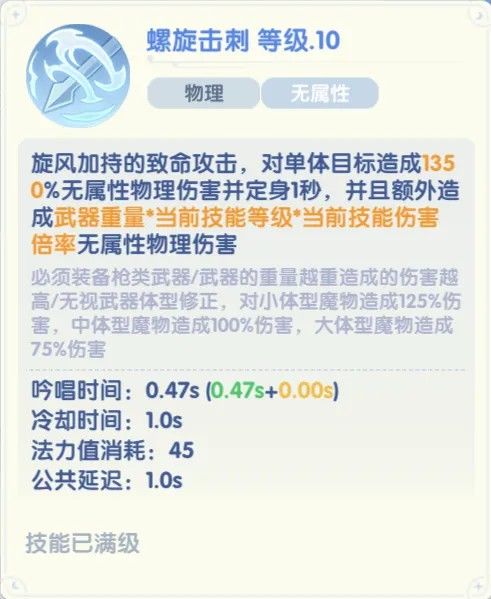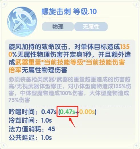 - 螺旋刺击技能只有固定吟唱,注意不要堆砌可变吟唱哦!