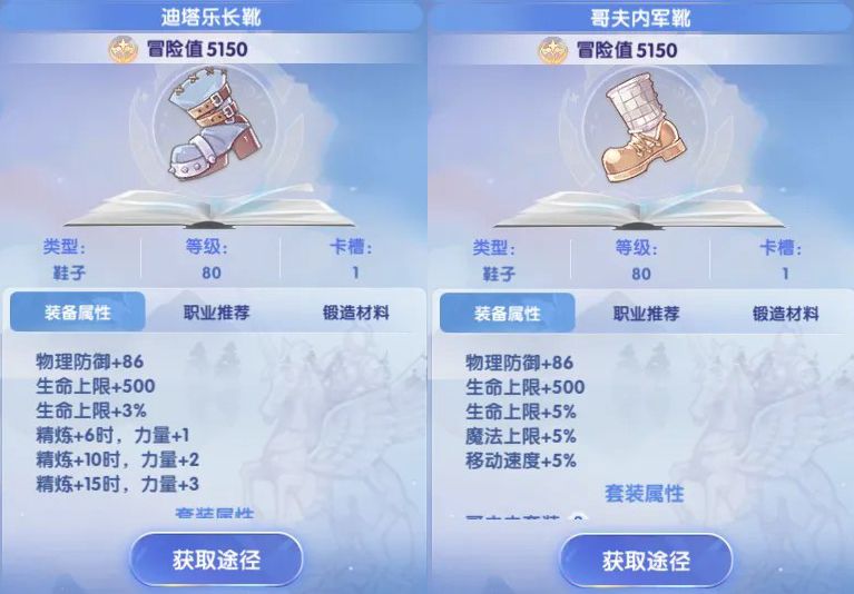 鞋子:迪塔乐长靴、哥夫内军靴(PVP可选)