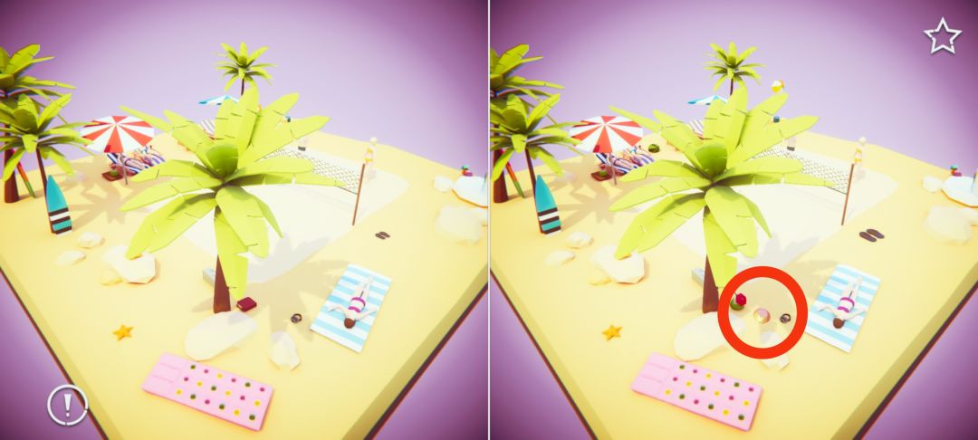 本款游戏是一款独特的找茬游戏。其核心玩法在于在精美设计的3D场景中寻找并指出其中差异的道具,相对于经典2D找茬游戏的难度,也是大幅提升。作者在游戏界面也提供了提示的按钮,非常河里后续游戏更新,也会跟...