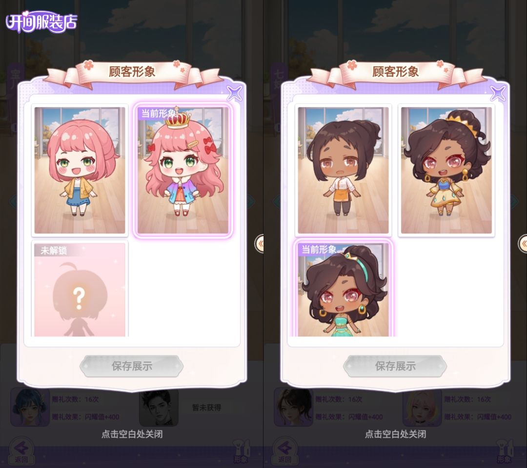 🙋♂️顾客有各种造型和身份,在剧情关卡中有不同的剧情设定,随着店长等级头衔的提升,会解锁不同顾客的量衣剧情,成功完成量衣任务会解锁顾客不同的造型哦~~