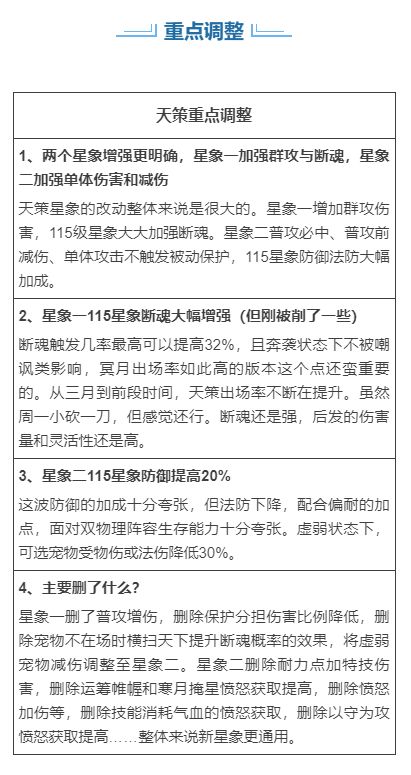 接下来会分三个部分——重点调整、各流派选择建议、调整前后星象变化(看看策划删了啥改了啥)