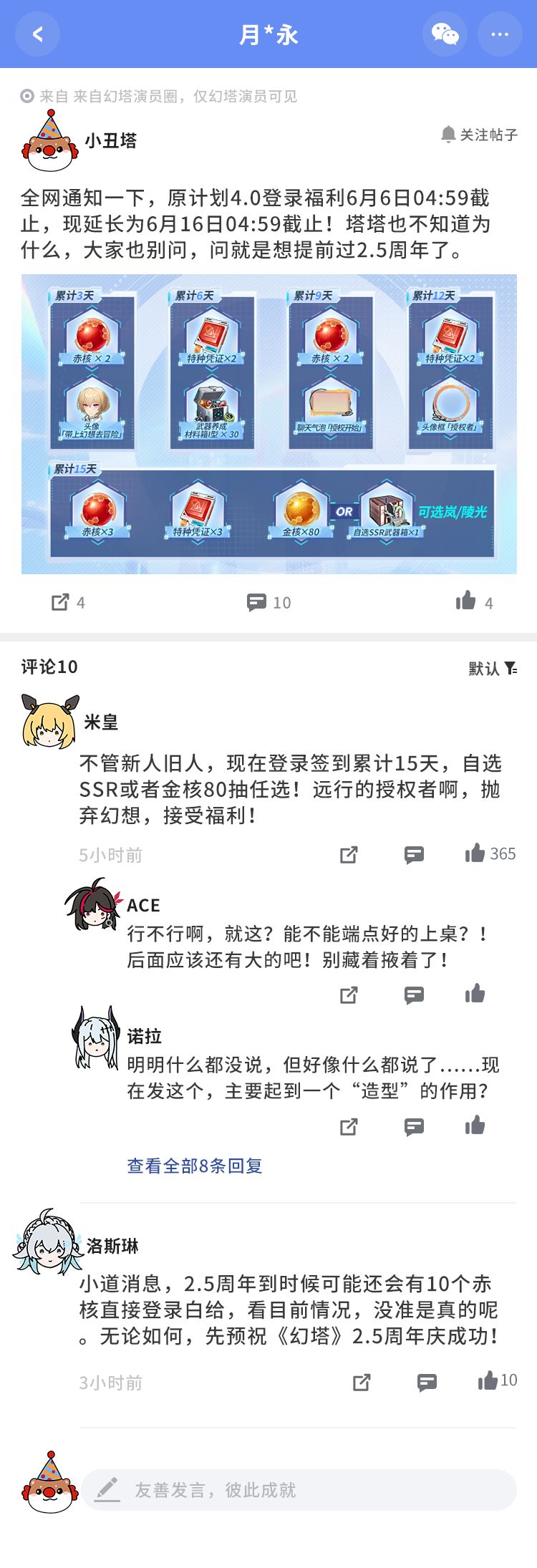 全网通知一下,为喜迎616《幻塔》公测2.5周年,塔方传来福利,一切答案全在今日的月·永圈里,请授权者戳图细品~