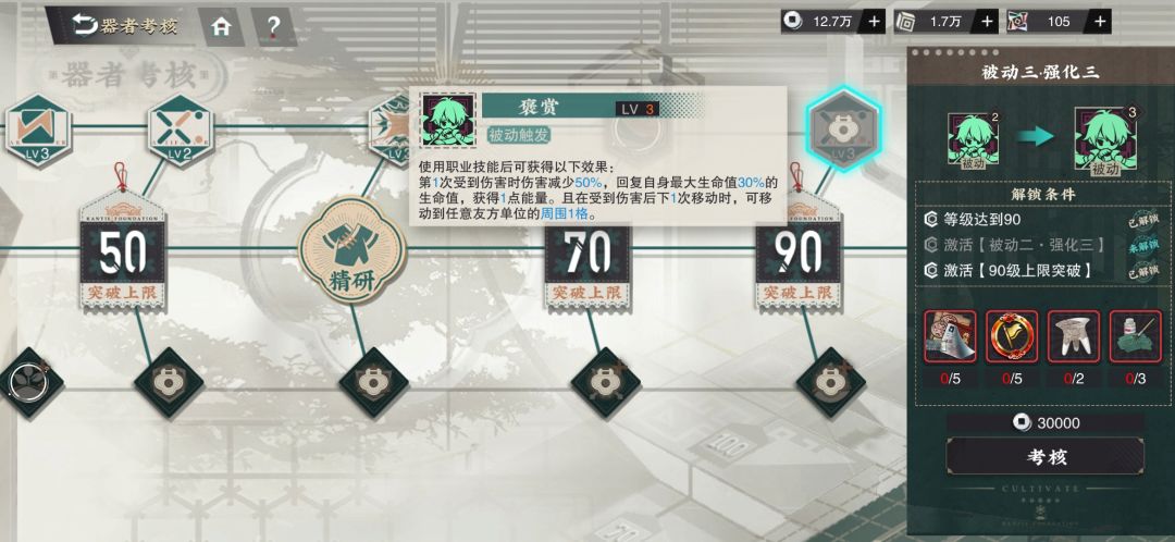 轻锐角色:等级越高越好,检具抗伤与输出,90级也够。