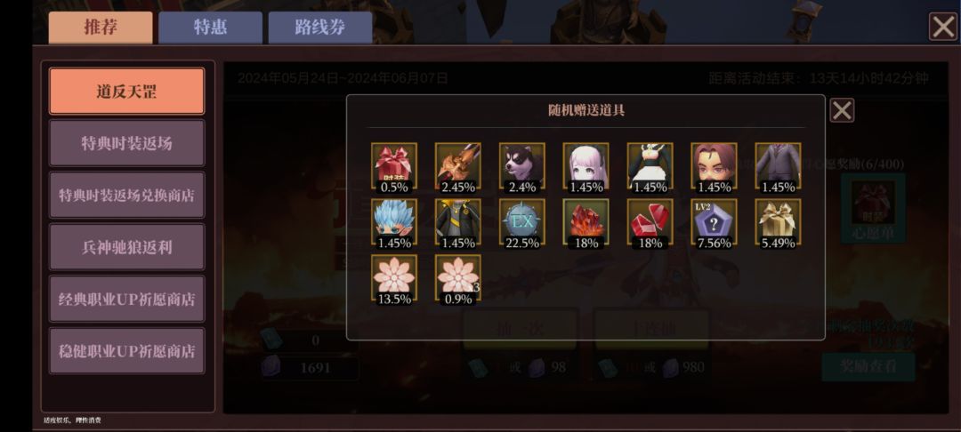 免费来源:抽时装概率出。13 .5%抽1个,0.9%抽3个。