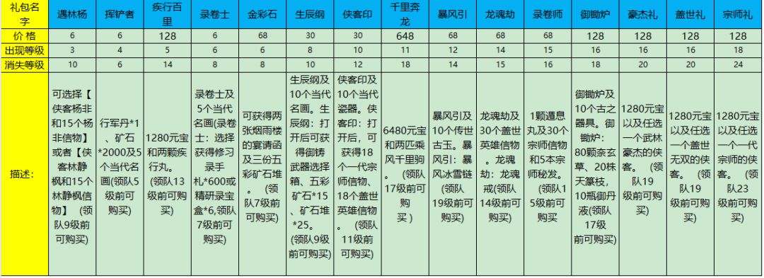 新手期礼包一览