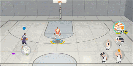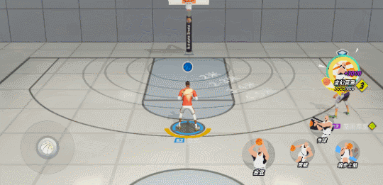 向前--抛投,向左--假抛向左垫步投篮,向右--假抛向右垫步投篮,向后--翻身后仰投篮。
