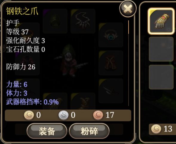 13、LV.13【盗圣的皮甲】类型:皮甲。