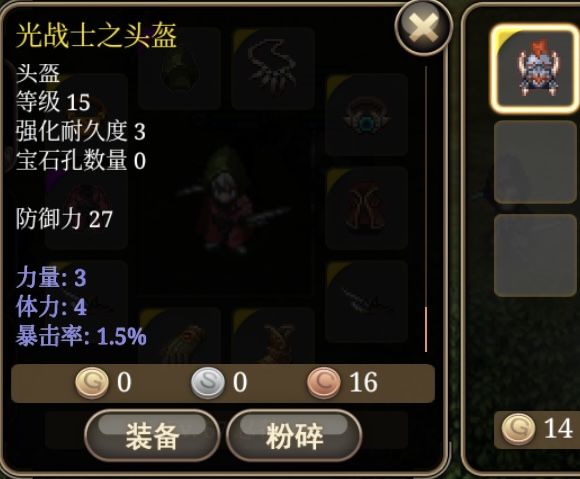 16、LV.15【光战士之头盔】类型:头盔。(【融合器武器】出处:哈肯沙漠5融合器)