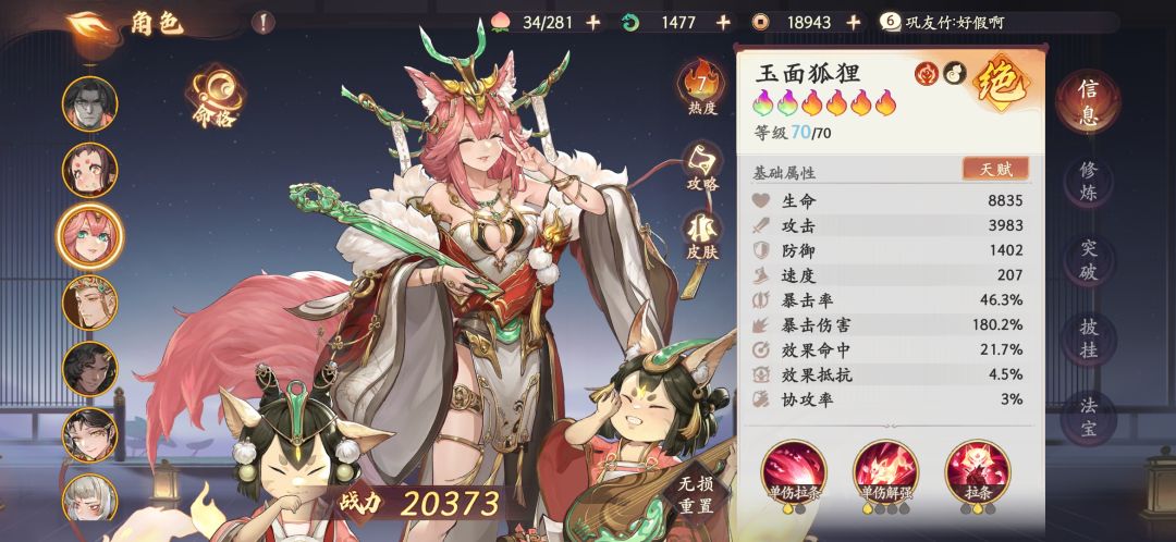 ①狐狸是pvp人权卡,需要固定一个位置,保证狐狸最高速度抢先手。我的破狐狸都207速度。大家对照下自己的狐狸找不足吧。
