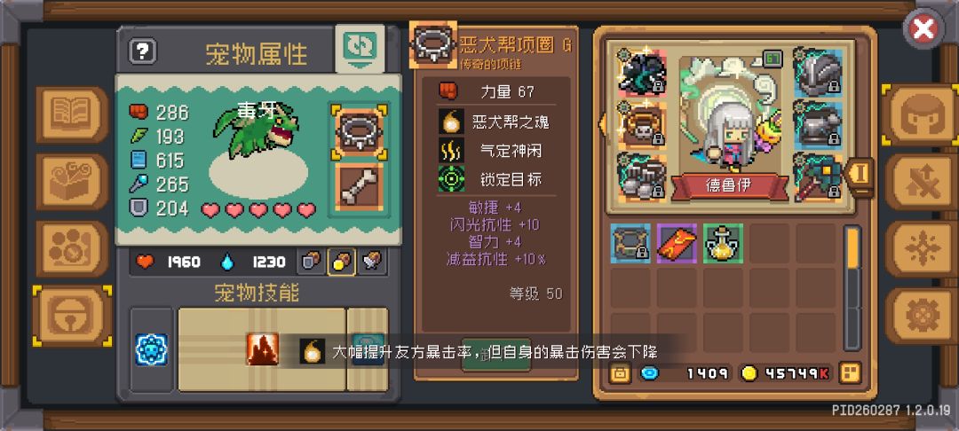 我个人推荐恶犬帮就行带一个范围扩散+60%暴击几率当个挂机足够了。近战宠物(大熊猫,狗子)带大当家去挨打。