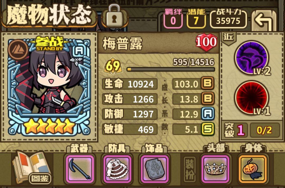现在是1破1266攻击,孵个15.2以上攻击还是能做到,三破最终攻击力应该能到1400。装备减cd是12+6+18+6+5=47,最终cd是10.6秒。我魔物有三羁绊加攻击,面板会高一点。