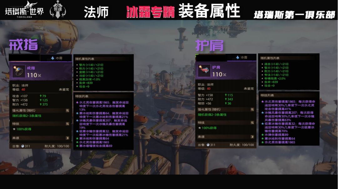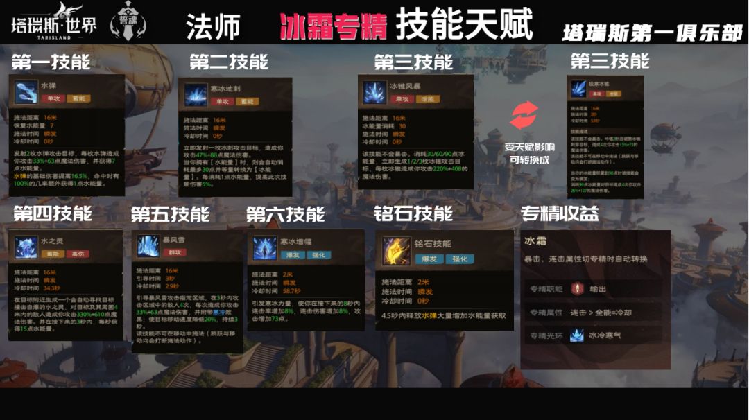 塔瑞斯世界S0赛季法师冰霜专精技能天赋110装备