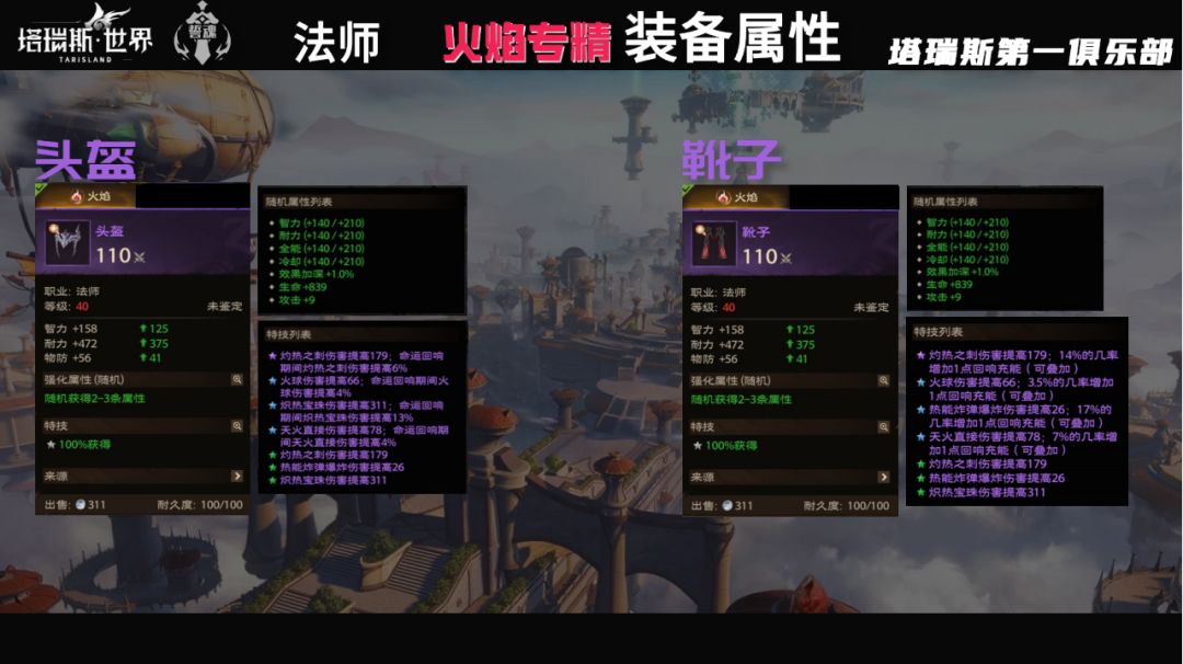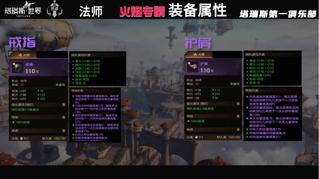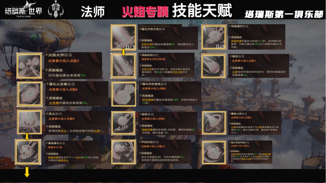 塔瑞斯世界S0赛季法师火焰专精技能天赋110装备