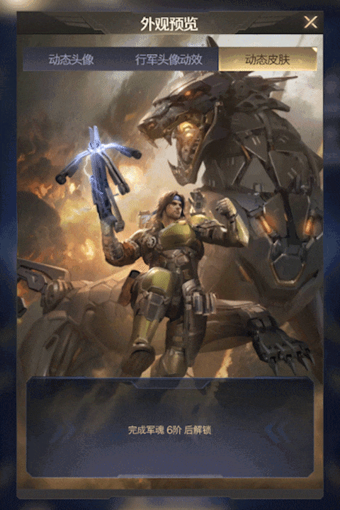 卡尔专属战技持续时间+2880秒进阶六阶军魂后可解锁对应英雄的动态皮肤。