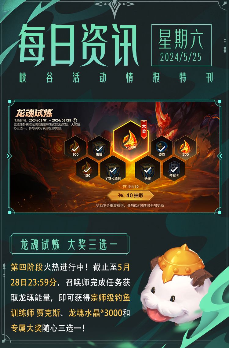 奖励:宗师级钓鱼训练师 贾克斯,龙魂水晶*3000,专属大奖