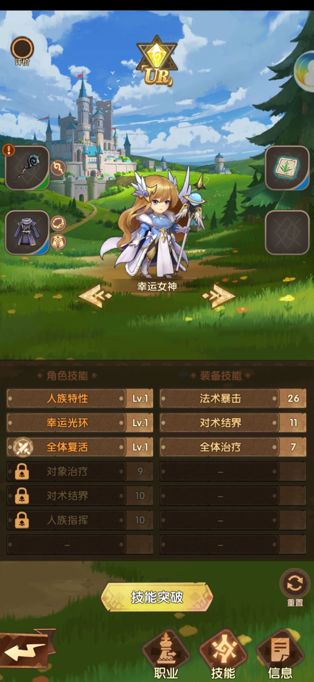 幸运女神必须放置在城堡,避免末日炎龙大招团灭,才能全体复活,卷土重来。