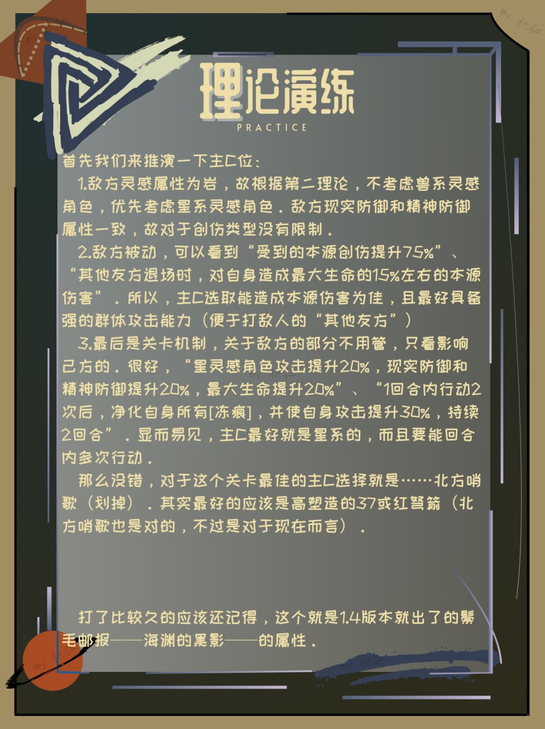 不过,也不得不承认,这片关于配队的通用理论的文章确实有点……鸡肋。毕竟主线可以硬推,深眠基本要看深蓝本期又给了什么增益、抬什么角色,uttu集会可以借其他人高练度的角色打穿。上述的这些基本不用怎么考虑配队,而唯一有点相关需求的鬃毛邮报,又极其吃练度。