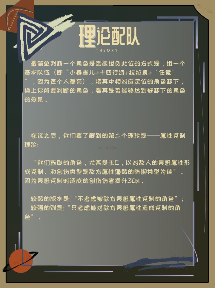 〔前言〕[编者按]本文章封面素材取自于网络,如有侵权请联系删除。。。新人不必循规蹈矩地参照理论进行配队,简单看看就可以了,了解一些小方法,“前期什么角色练度高,给他们凑一起上就行了”,这是在前期绝...