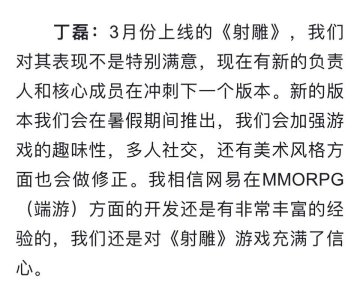 自被丁磊点名批评后《射雕》的表现后