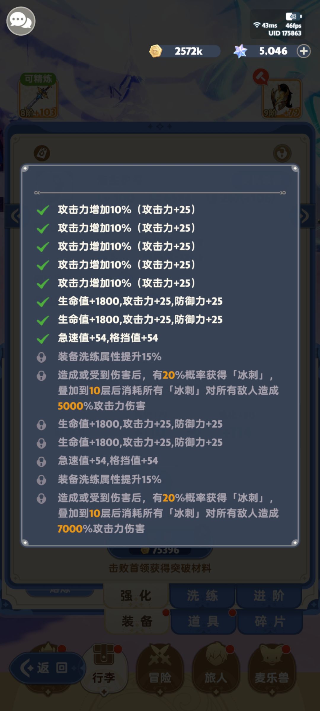 现装备的武器可以进阶了,可以先看看背包里有没有刚好属性的装备,可以先装备更好属性的装备,再直接进阶这个更好属性的,目的是白嫖属性(装备等级差异不大建议属性优先)