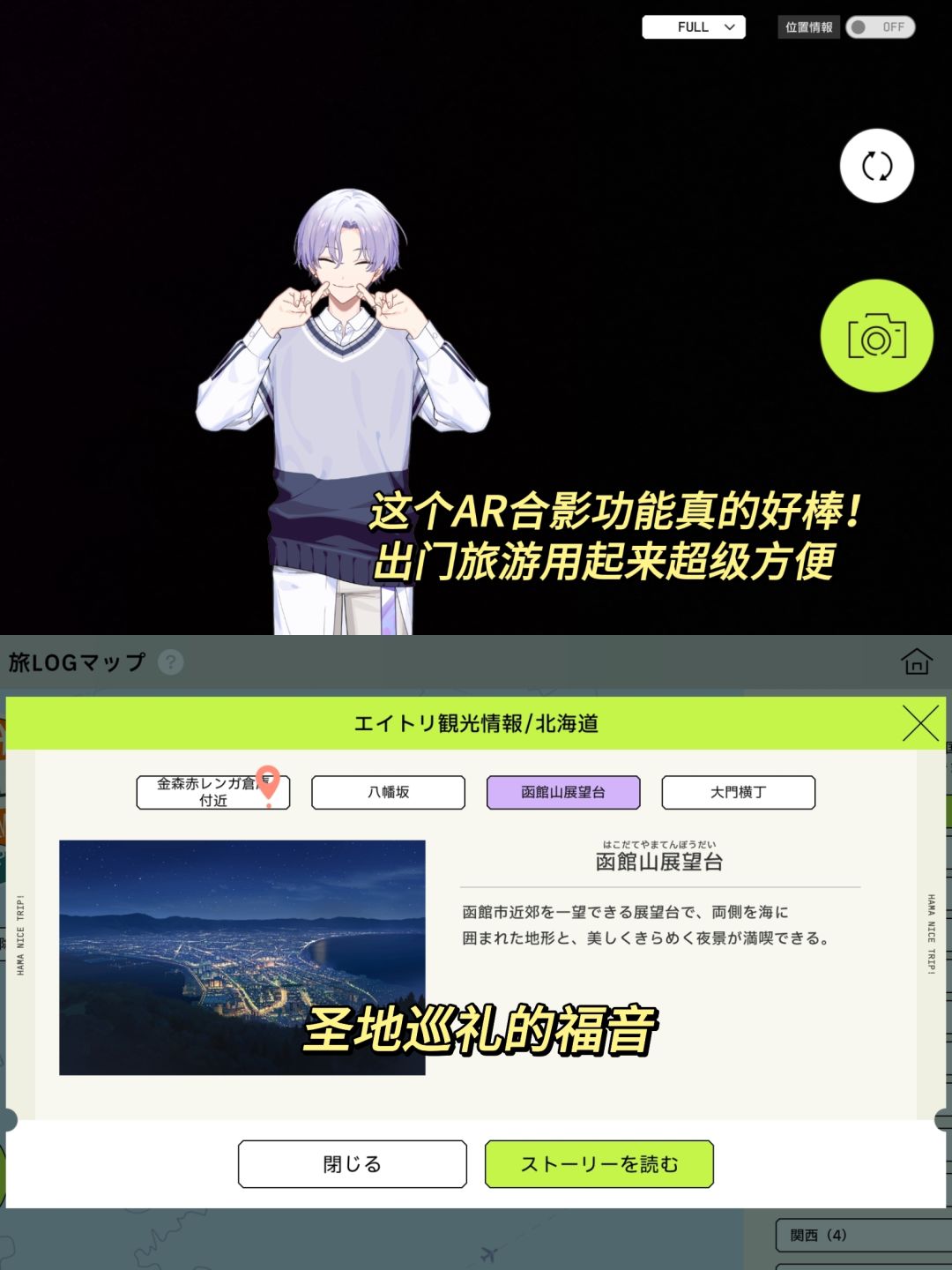 AR这个玩法就很吸引人了,游戏里还内置了旅游地图,简直就是圣地巡游的福音,感觉出门可以很方便地跟自推合影,这也太幸福了
