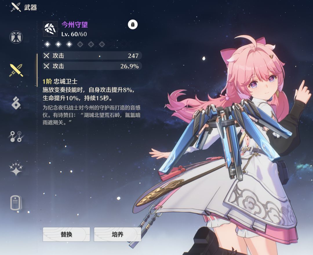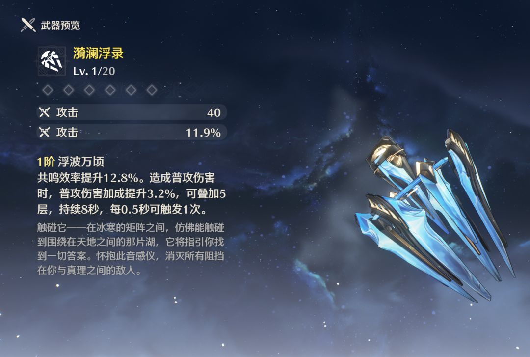 然后就是武器选择了,首选肯定五星武器,虽然不提供暴击,但是它的属性词条很好,安可用着也很好。次选大月卡武器,然后就是卡池的四星武器。