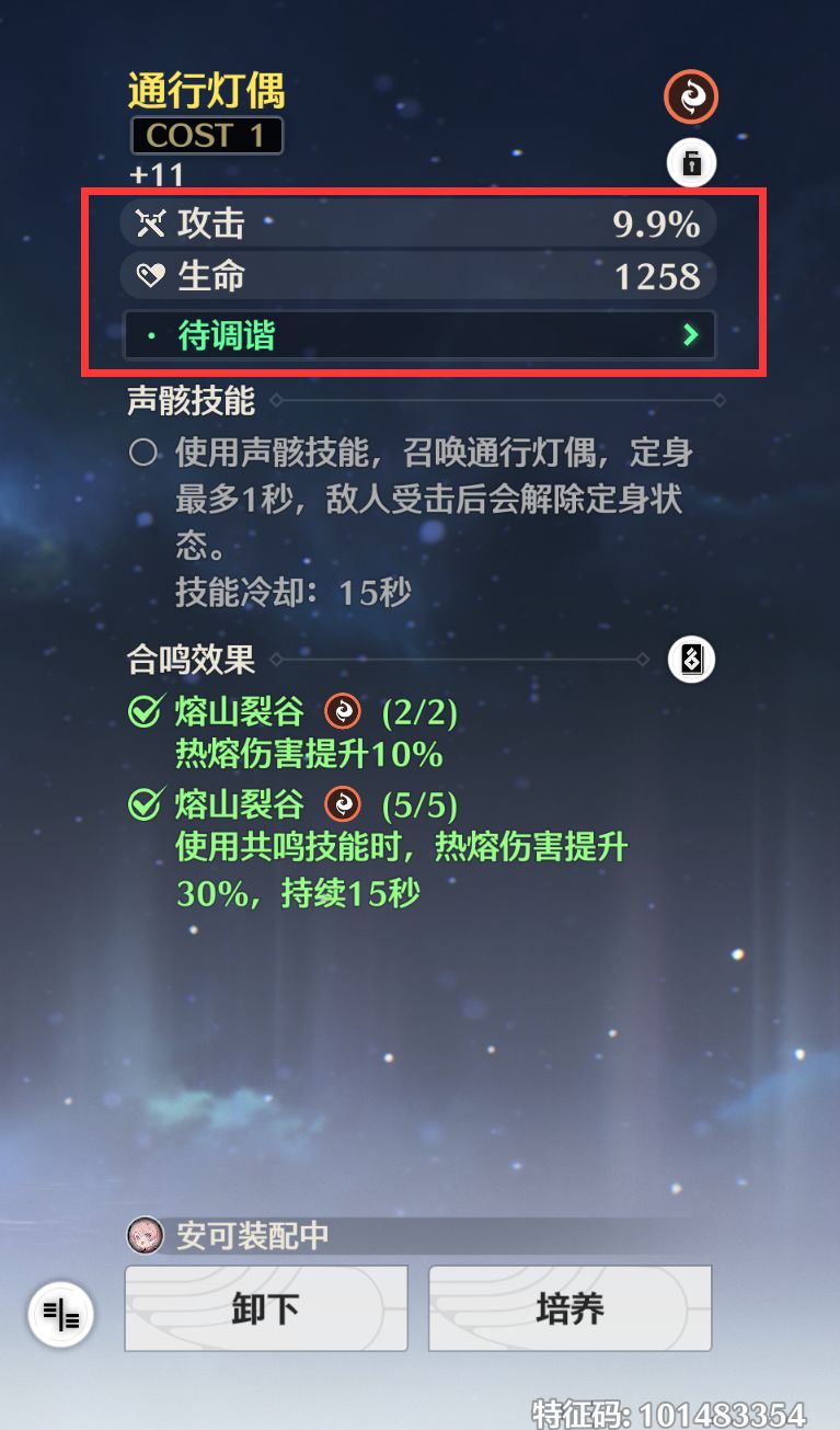 其它两个三费声骸主属性用热熔伤害加成,两个一费声骸主属性用攻击加成。