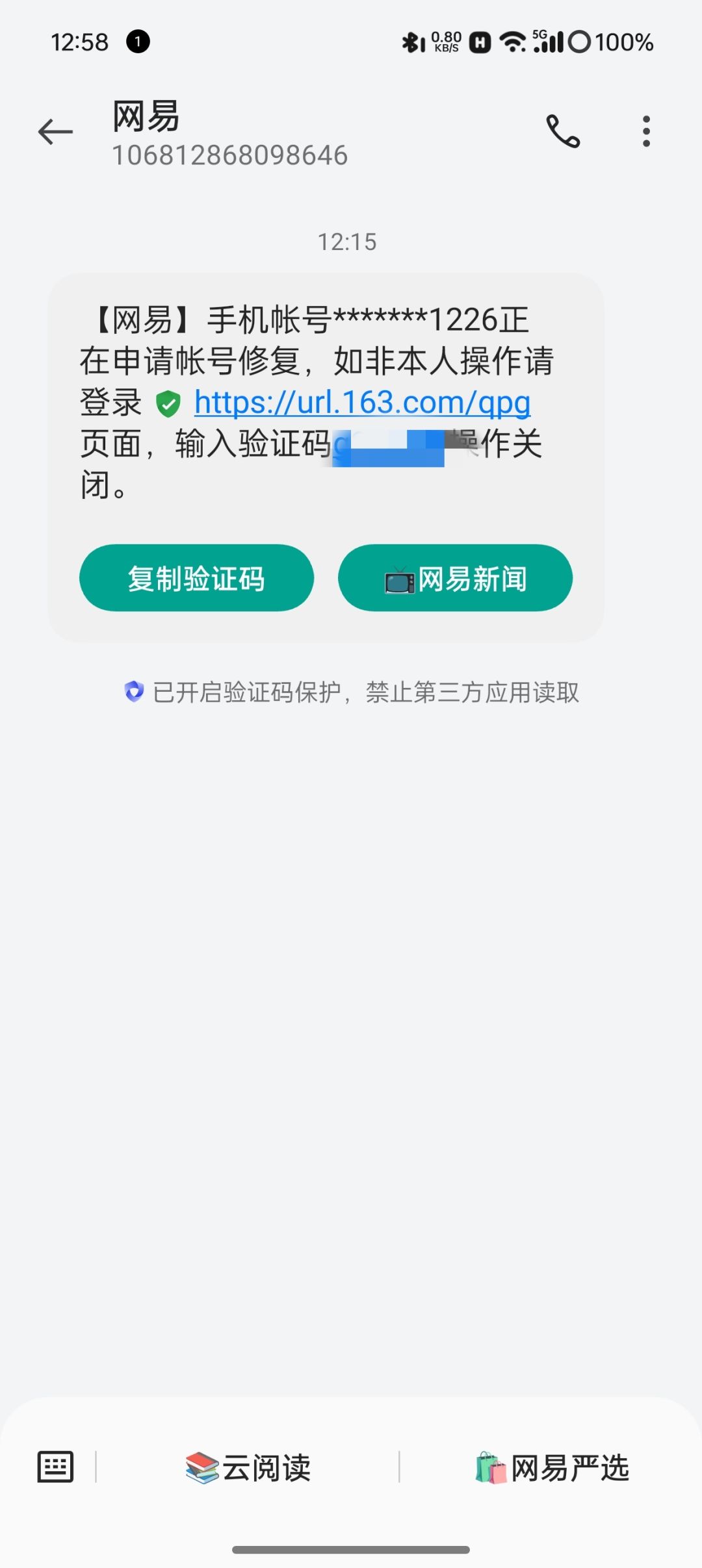 他现在进行修复,还会给我发送可以取消修复申请的短信,我就担心哪天会不会他直接修复成功,绕过给我发短信这一步骤,或者说时间很短,到时候半夜申请,我一早醒来号没了。