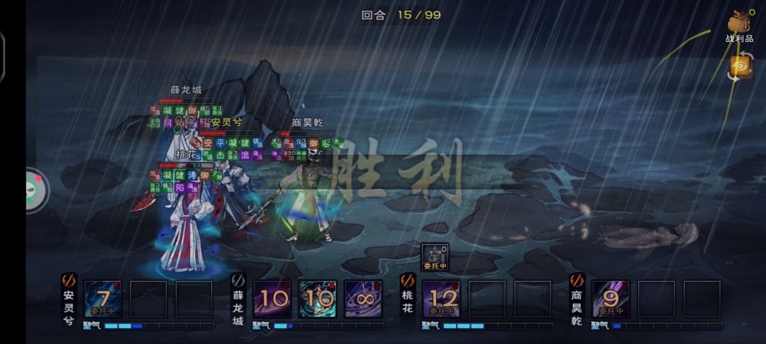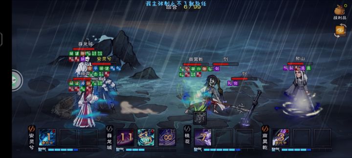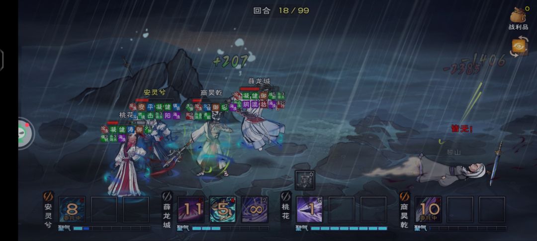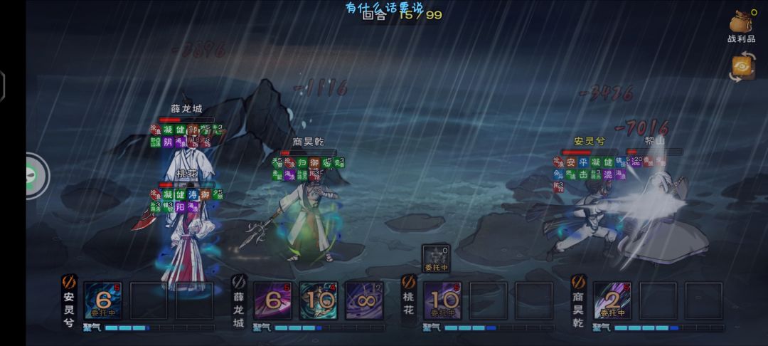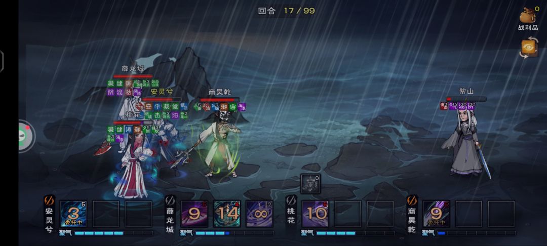 ⭐第三阶段:黎山20%血量会在下一回合进入第三阶段,输出够的可以在此回合集火秒掉。下一回合黎山回复4w血,输出手段变为每回合aoe。输出不够的就留技能,#由于第二阶段黎山叠的剑气不算多,本阶段的全屏aoe伤害相对也没那么高,天蚕复活没被打出来的话稳过的。