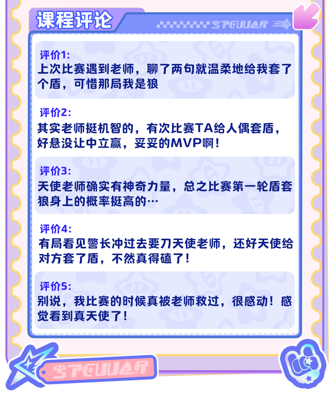 咳咳,同学你知道吗?最近《“谁是狼人”学》的课程系统,开放了授课教师的课程评论功能~评论区的留言实在太精彩!星妹已经把它当做电子榨菜看了~嗯?你还没看过?那可亏大了~快吃我一记安利!