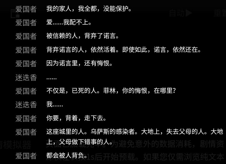 考究不易,到此结束,虽然花了十几个小时去研究和写稿,但是我很难用什么简短的话来书写这个人物的一生。只能引用他自己讲的话了,那么本期关于爱国者和温迪戈的考究就到此结束,还有许多未完结的内容只能期待更多的博士评论区补全和后续明日方舟更新相关剧情了!![[TapFamily_摸鱼]](https://img.tapimg.com/market/images/d1c4b638edc261cecf3a91b54a742d96.gif)