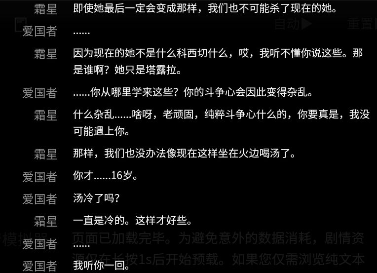 ②他和霜星在整合运动中的地位和声誉极高,因此他不能也不可以和塔露拉作战,如果让整合运动的成员看到领袖和将军对阵沙场,无论哪一个赢了,整合运动这个感染者的革命旗帜就一定会土崩瓦解,爱国者为感染者而战,他不希望整合运动和感染者们的信仰出现裂痕,他背弃了卡兹戴尔,背弃过萨卡兹,也没能保护自己的家人,每一个,包括叶莲娜,