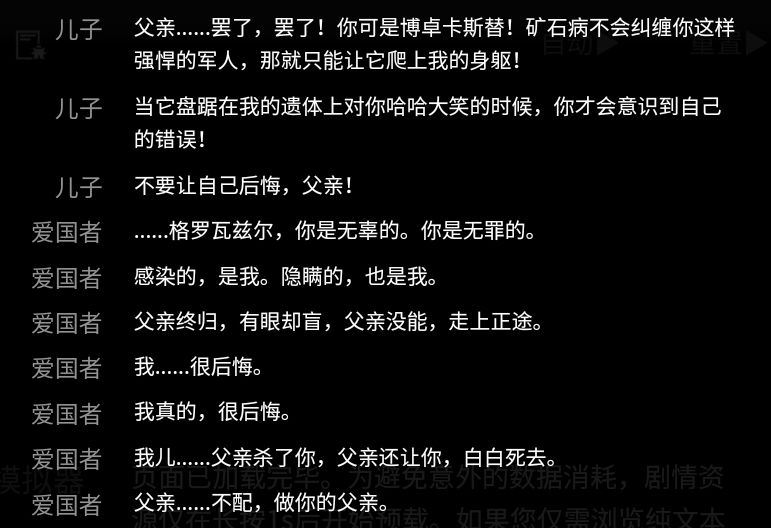 同样,也是在这个时候,爱国者感染矿石病,而乌萨斯对感染者的态度可以说是残忍至极,从阿米娅读取的爱国者记忆中可知,爱国者也参与过对乌萨斯境内感染者的“处理”,而爱国者的回忆中,是他杀了自己的儿子