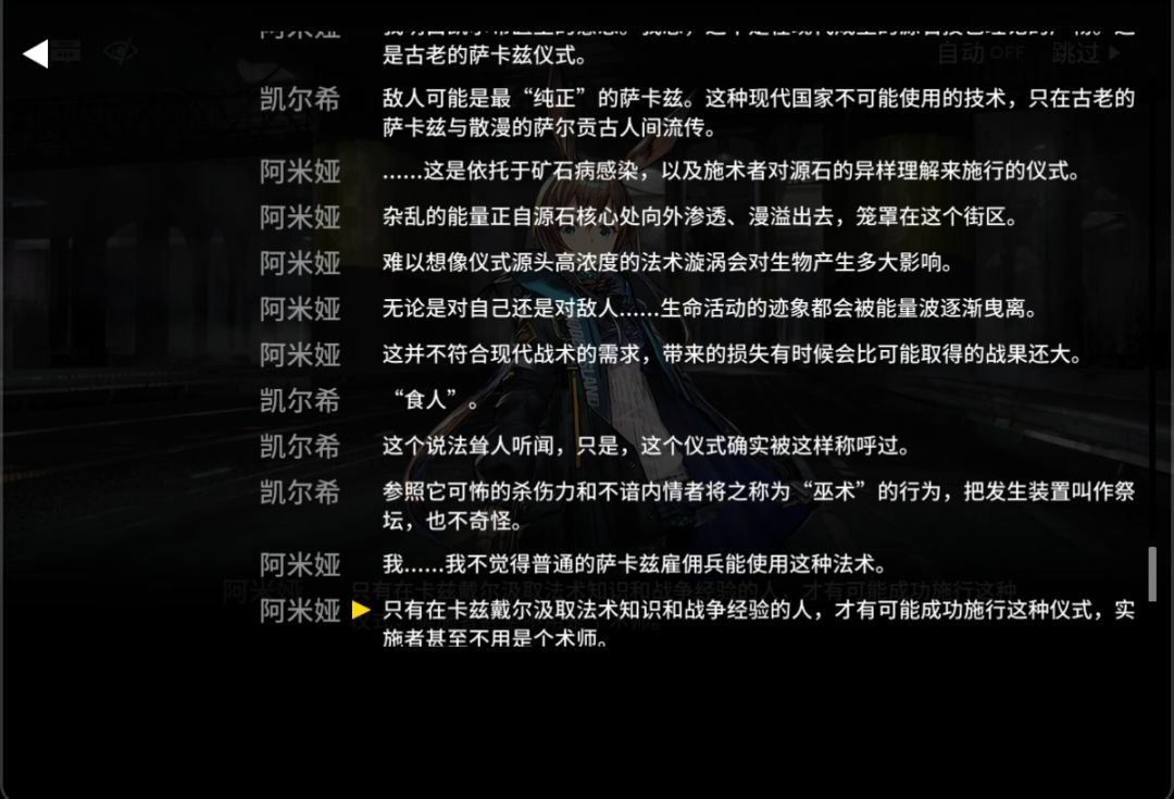 乌萨斯阶段:在剧情《遗尘漫步》中交待,乌萨斯指派温迪戈去征伐北方的邪魔,大概就