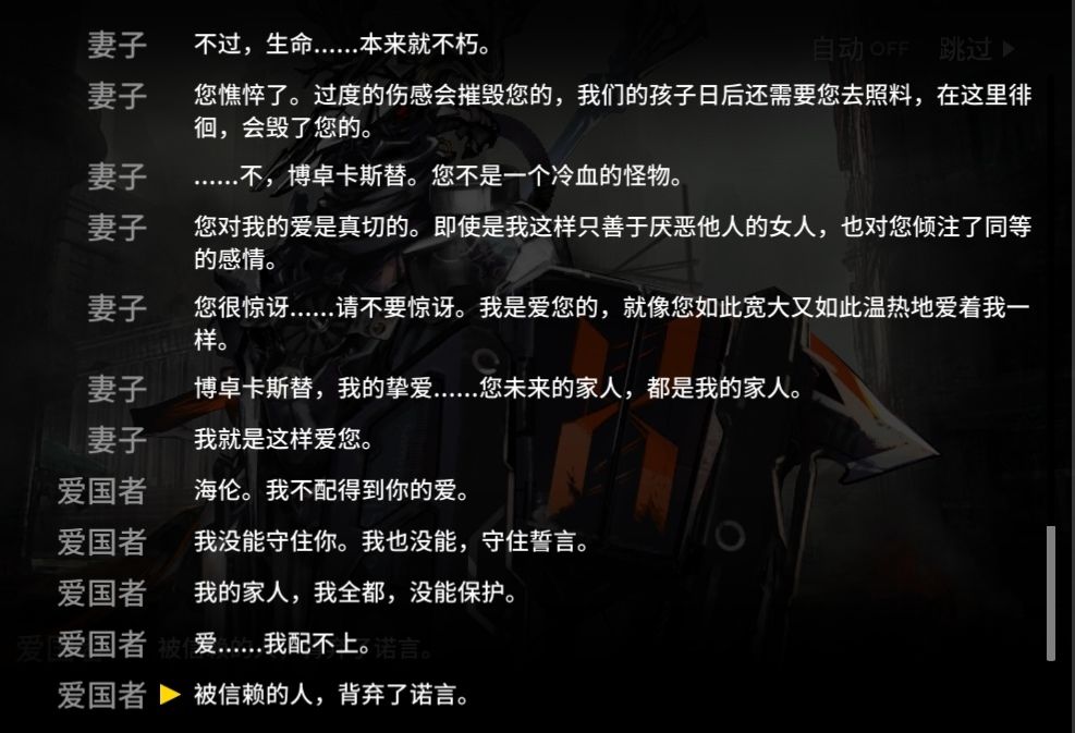 他自认为一生中有两次背叛,他背叛了卡兹戴尔,不再为他的血脉国家而战;他背叛了乌萨斯,不再为他的“祖国”而战;