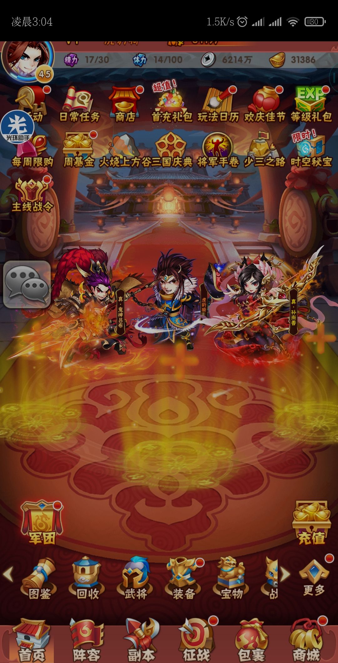 赶上这次佳节,活动是军师和宠物主打翅膀,不过目前这些都不需要,因为等级低,先攒 宝 看接下来的活动有没有武将。