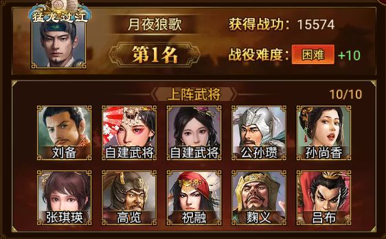 刘备、公孙瓒、孙尚香、张琪瑛、高览、祝融、麴义、吕布、自建武将*2