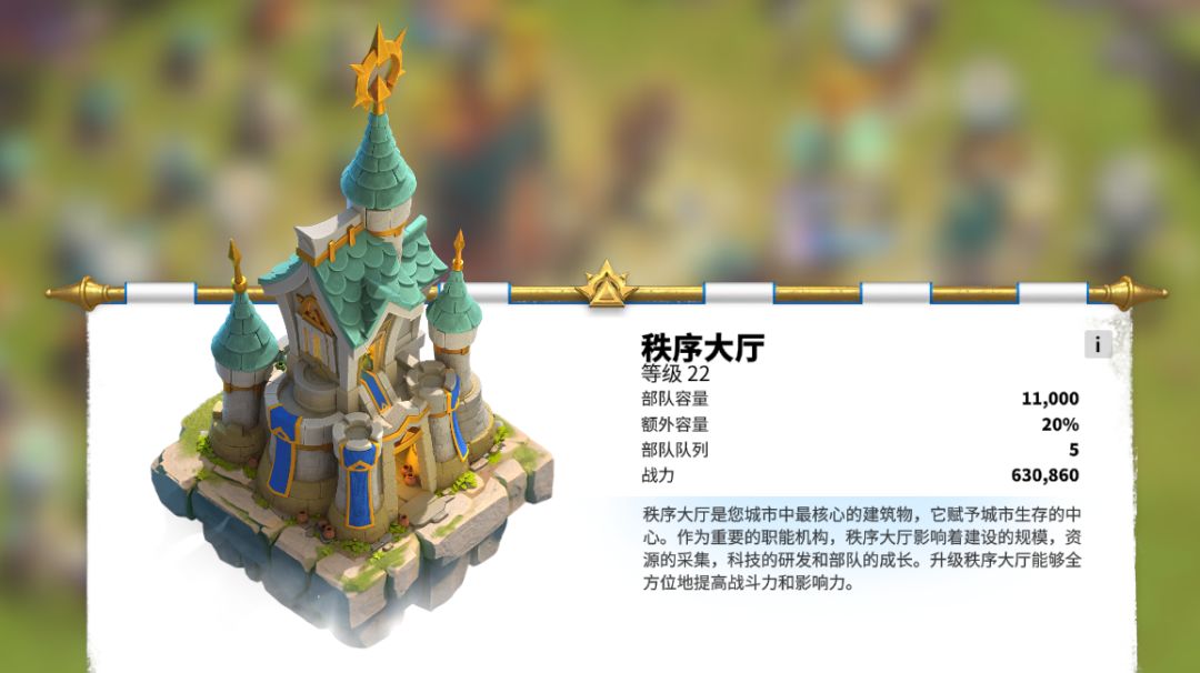 秩序大厅,也可称为主堡,是万龙觉醒中城市系统的核心建筑,优先提升秩序大厅是上上策,秩序大厅限制着其他建筑的等级上限,提升等级才能训练更高等级部队,研究更强大科技。