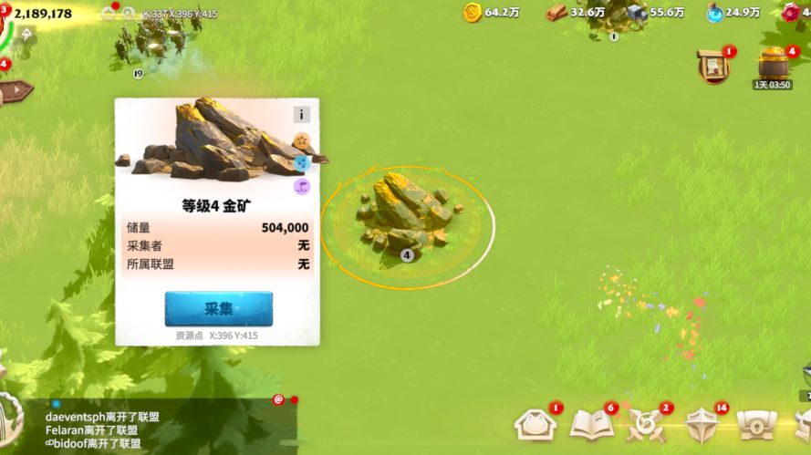 如果建筑升级资源或者加速不够,怎么办呢?除了采集弥补资源外,探索地图也是不错的选择。
