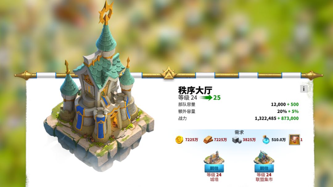 随着建筑升级所需资源和时间的大幅增加,领主在准备升级前需大量积累资源,此时领主如果没有过硬实力保护自己,那么将面临被他人攻击的风险。